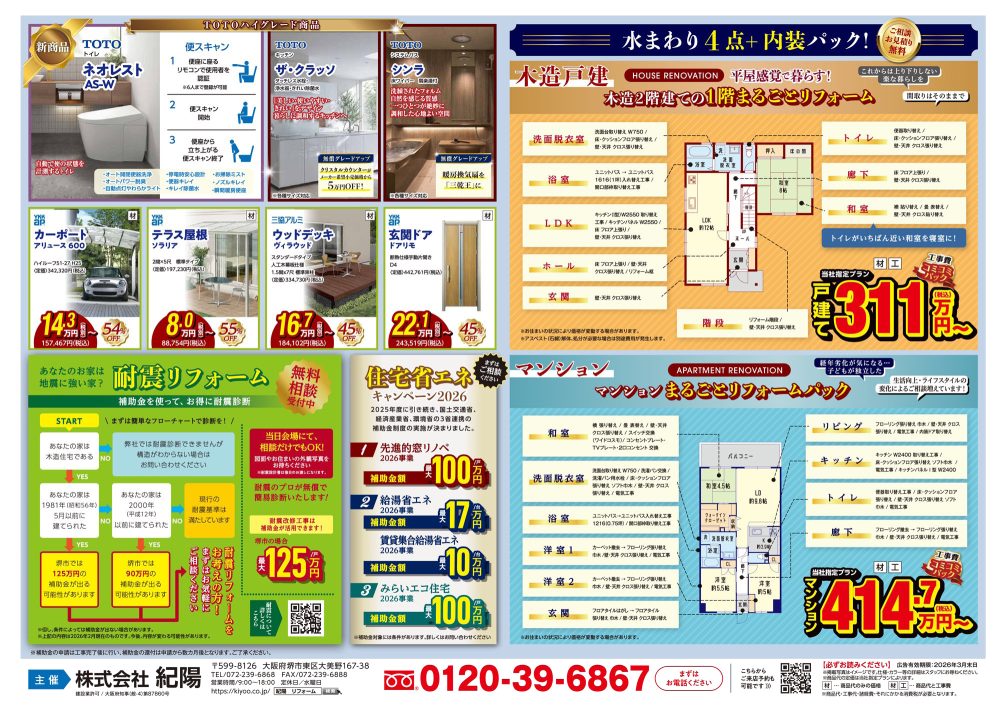※このイベントは終了しました 2026年紀陽のリフォームお年玉セールを開催いたします!